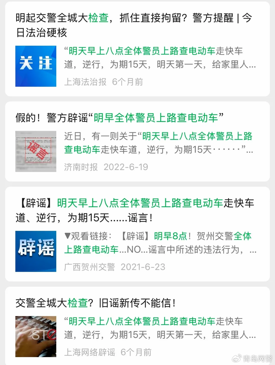 据@青岛网警 消息,近日,一则“交警全城大检查”的消息,在社交媒体上传播,引起网民关注和讨论。