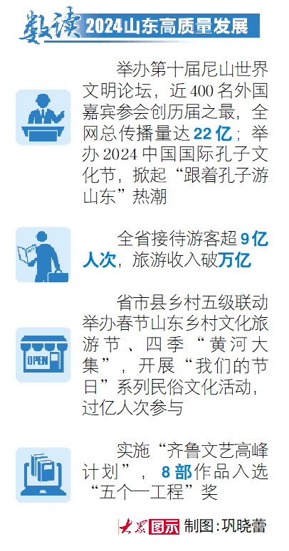 深入推进省属文化企业改革发展,创新实施文化数字化行动计划,推动鲁影、鲁剧、鲁戏、鲁版图书等产业高质量发展,实施网络视听新业态孵化、数字出版融合创新等工程,建好用好“齐鲁文化大模型”……齐鲁大地上,文化赋能产业融合发展,涌现出越来越多的经济增长点,推动文化资源优势不断转化为文化发展优势。