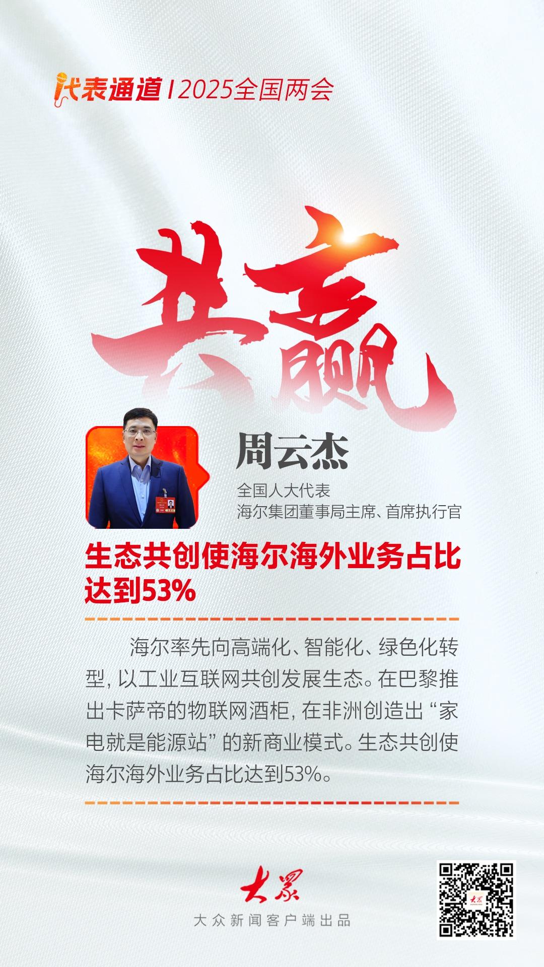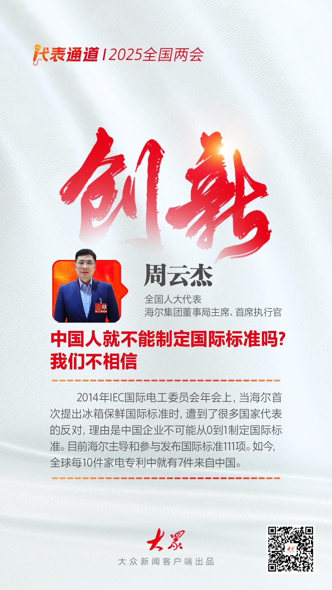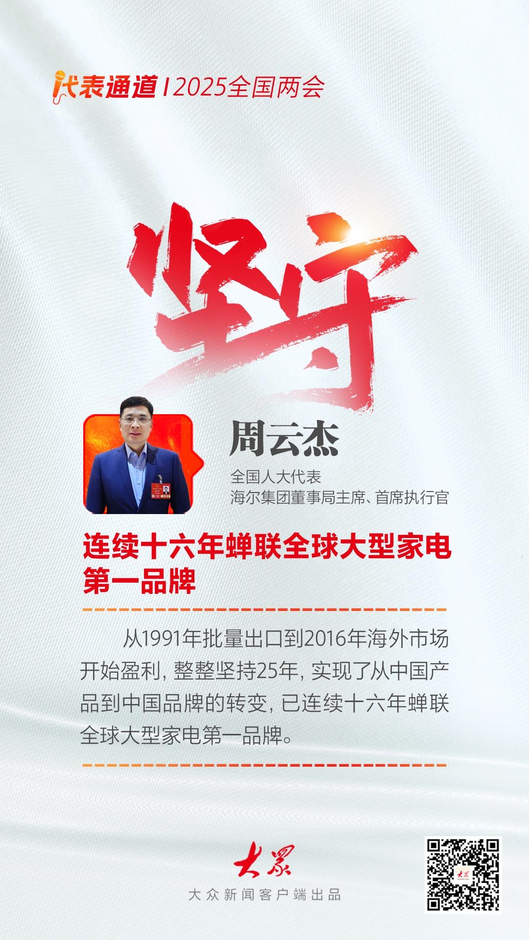 今天(3月5日)上午,第十四届全国人民代表大会第三次会议首场“代表通道”在人民大会堂举行,全国人大代表、海尔集团董事局主席、首席执行官周云杰接受了记者采访。