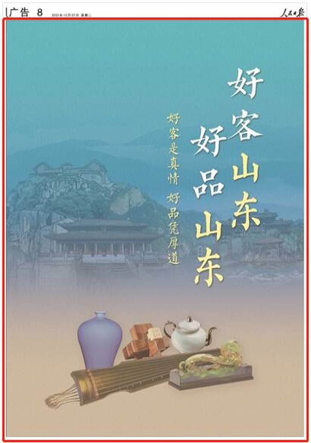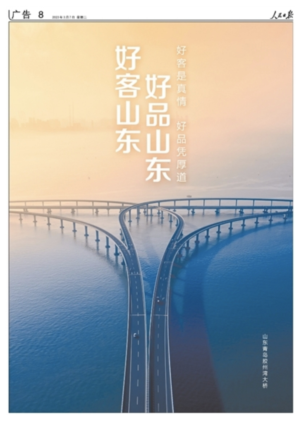 2022年3月,《人民日报》用4个整版刊发“好客山东 好品山东”公益海报。
