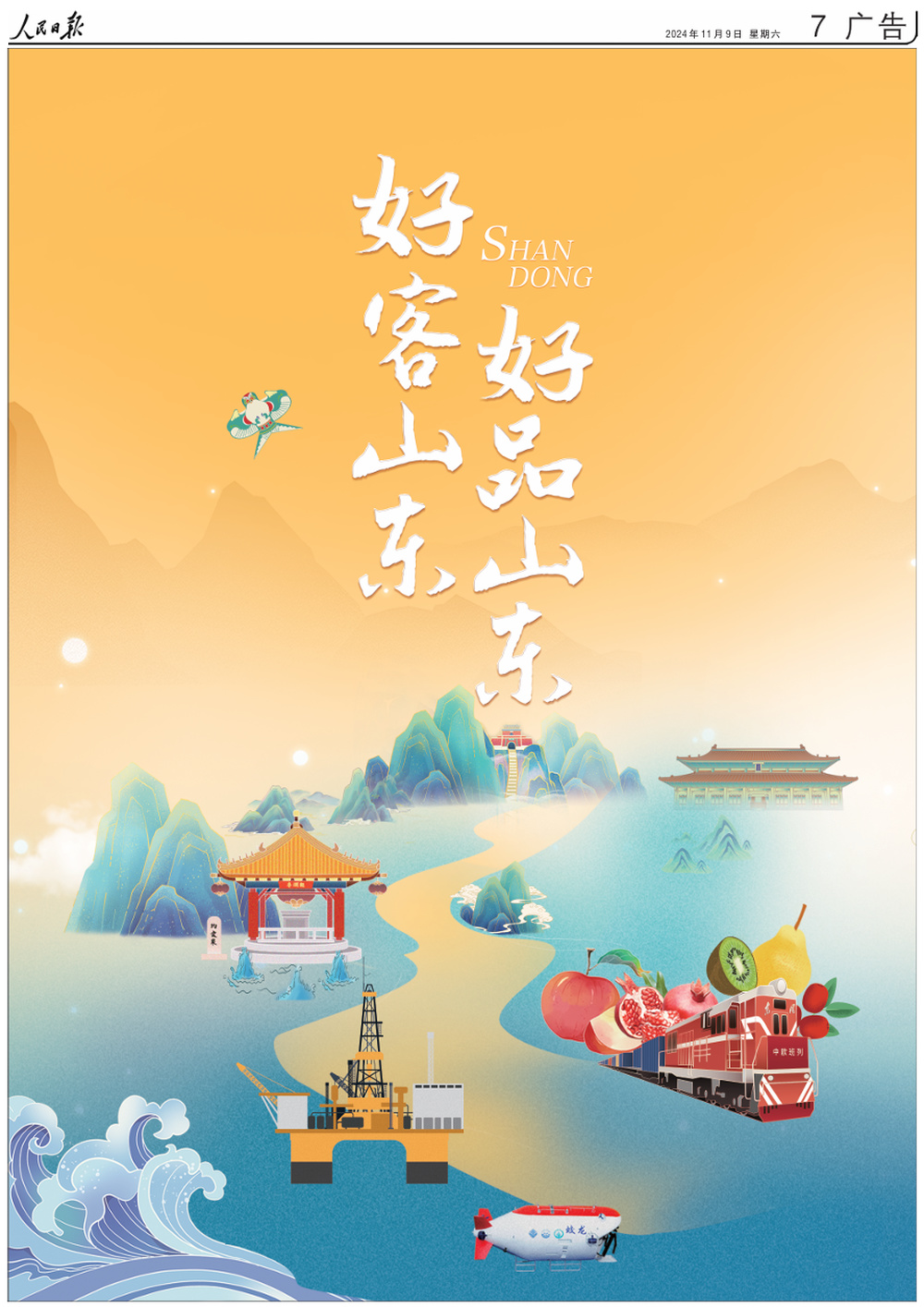 2024年11月9日,《人民日报》在第7版整版推荐“好客山东 好品山东”。