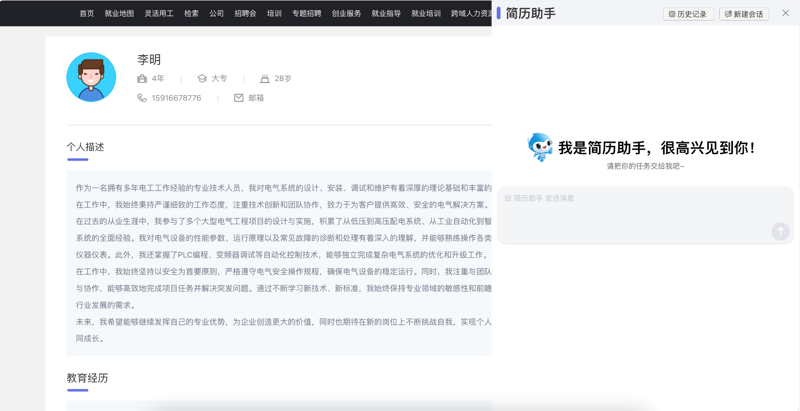 升级就业服务平台,创新开发“AI简历助手”和“求职者智能筛选评价”两大应用场景,实现双向精准匹配,提升就业成功率。“AI简历助手”场景,能够针对简历进行结构优化与内容精炼、关键词优化与岗位匹配、数据量化与成就凸显、定制化修改建议。“求职者智能筛选评价”场景可实现快速初筛、多维度评分和生成智能评价报告。