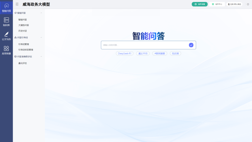 本地部署的威海市政务大模型平台除具备基本的智能对话功能外,还支持本地知识库挂载,可以根据个人写作风格和知识储备,生成符合个性需求的文稿,提高撰写质量和效率。