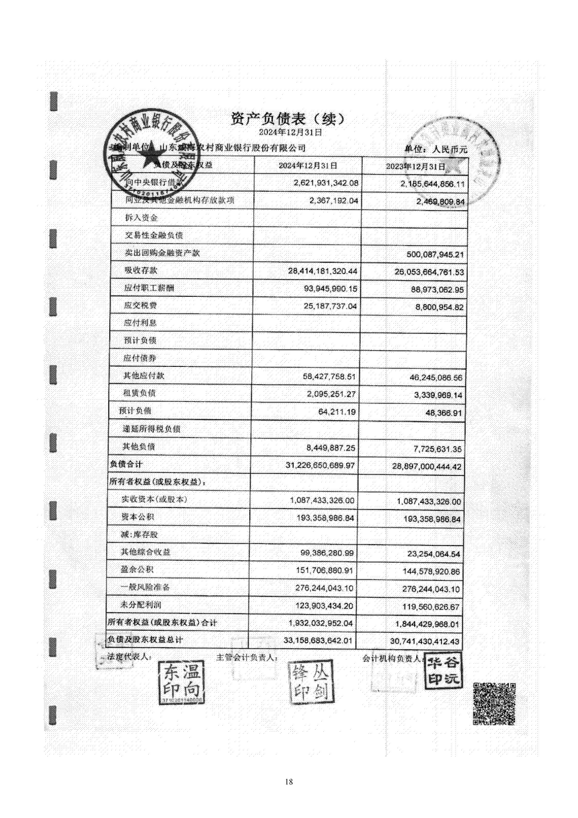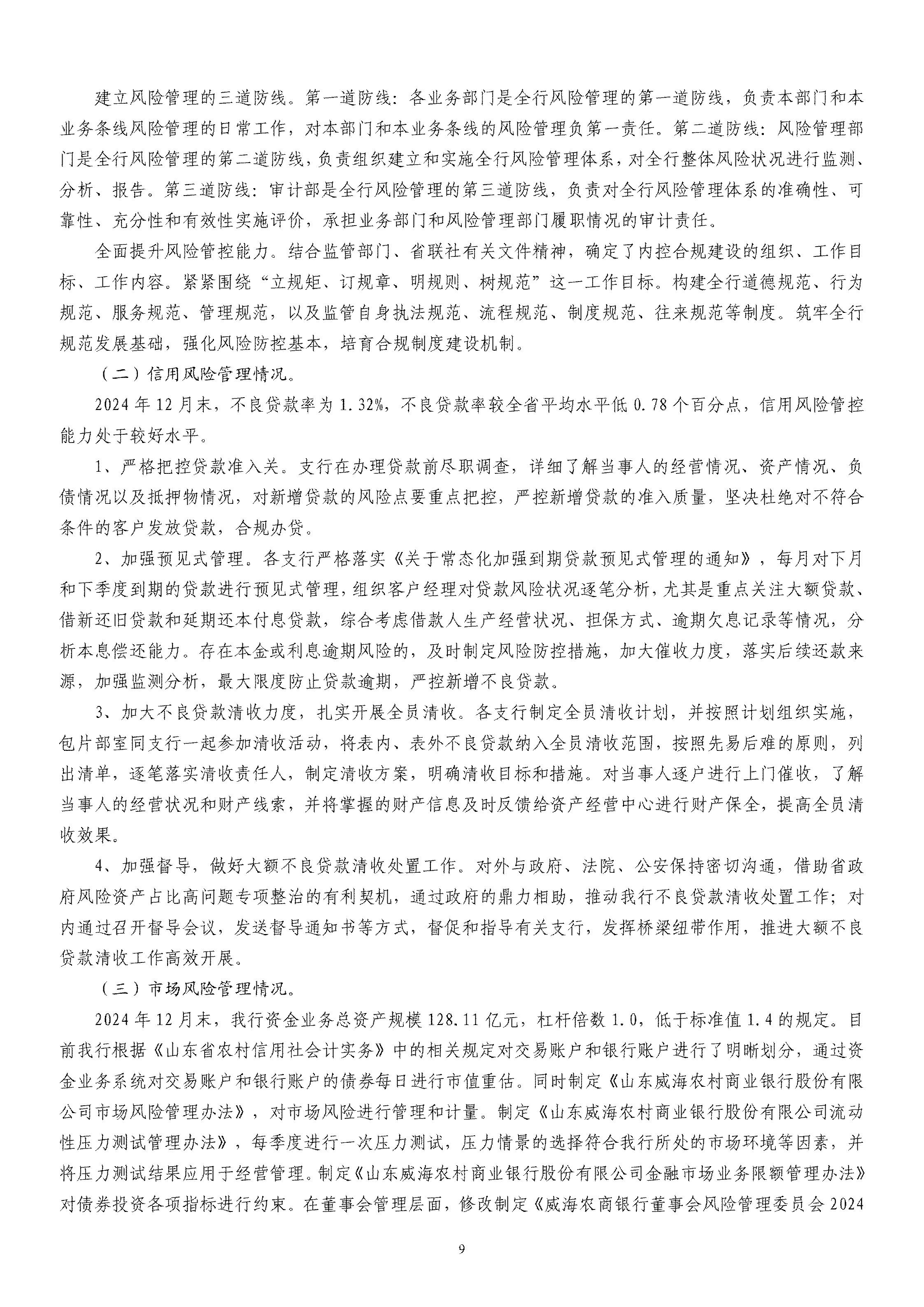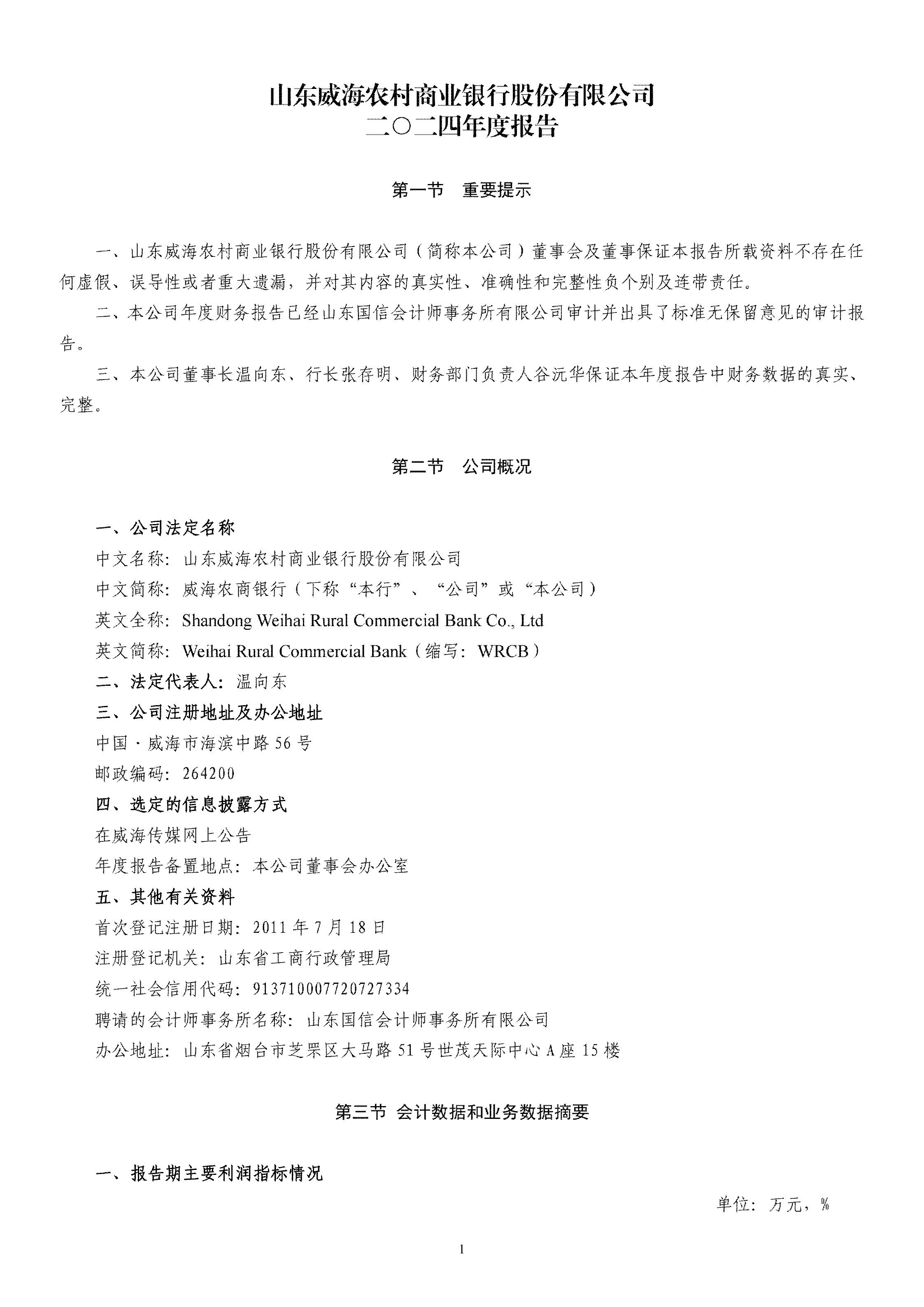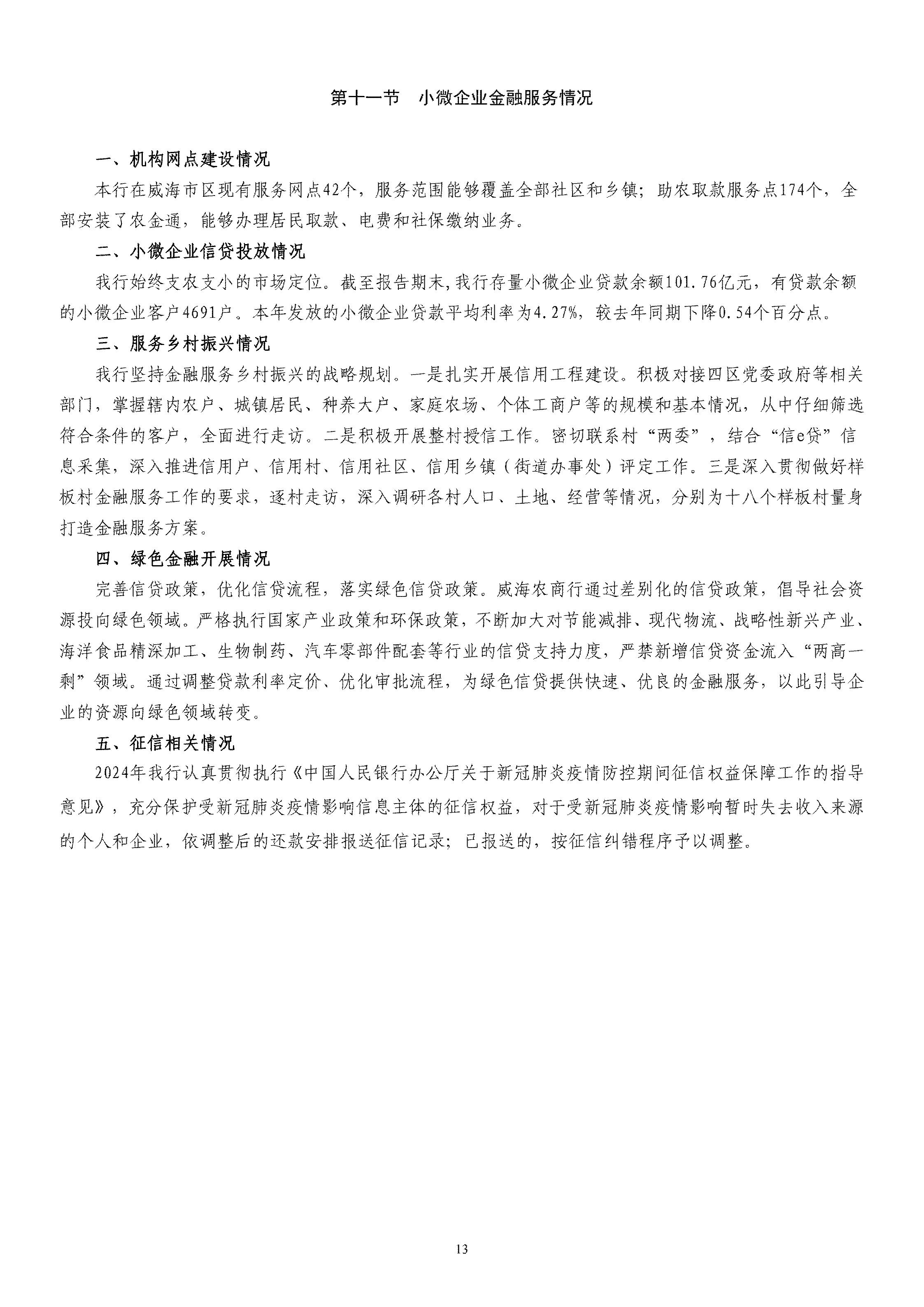 山东威海农村商业银行股份有限公司二〇二四年度报告