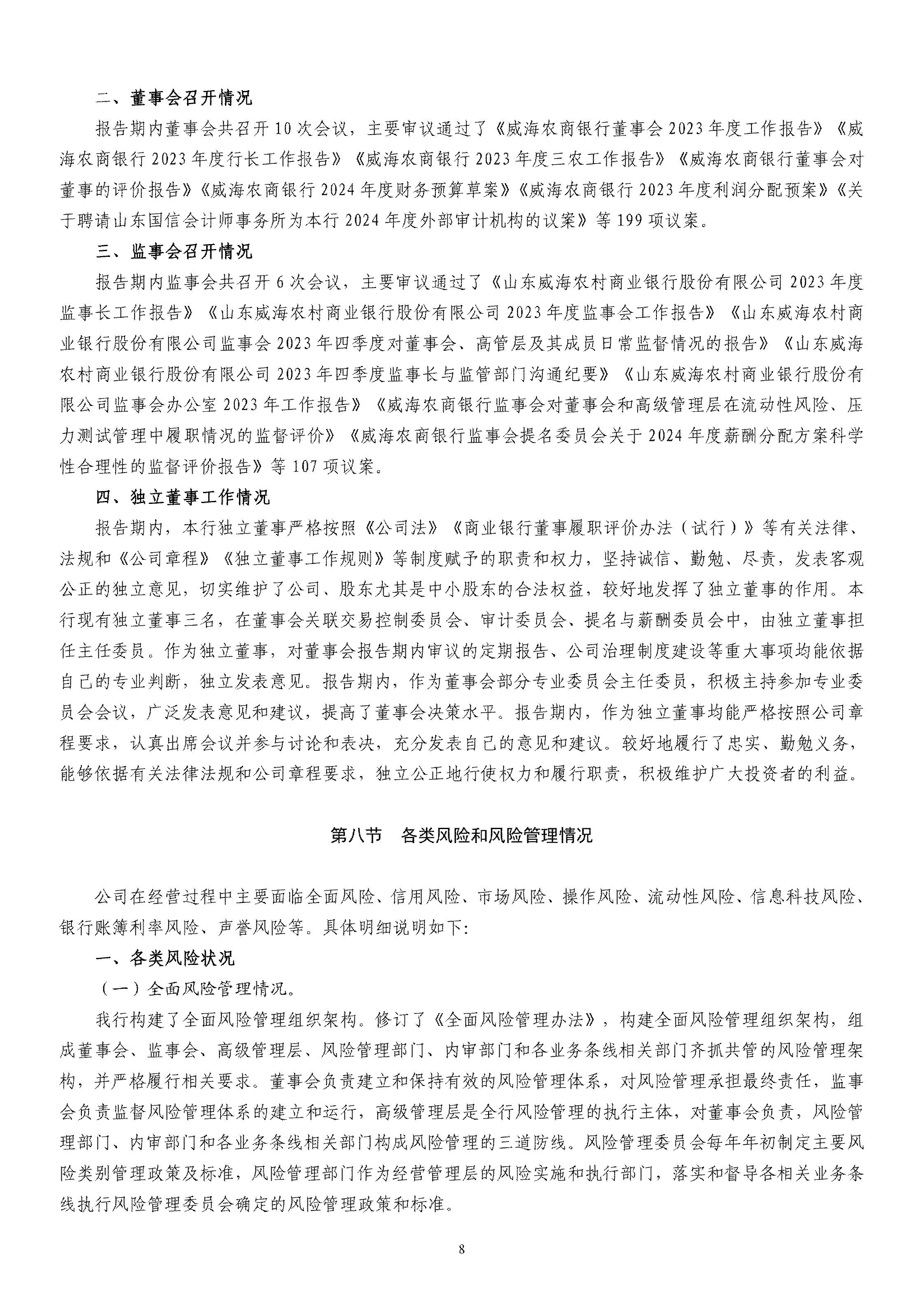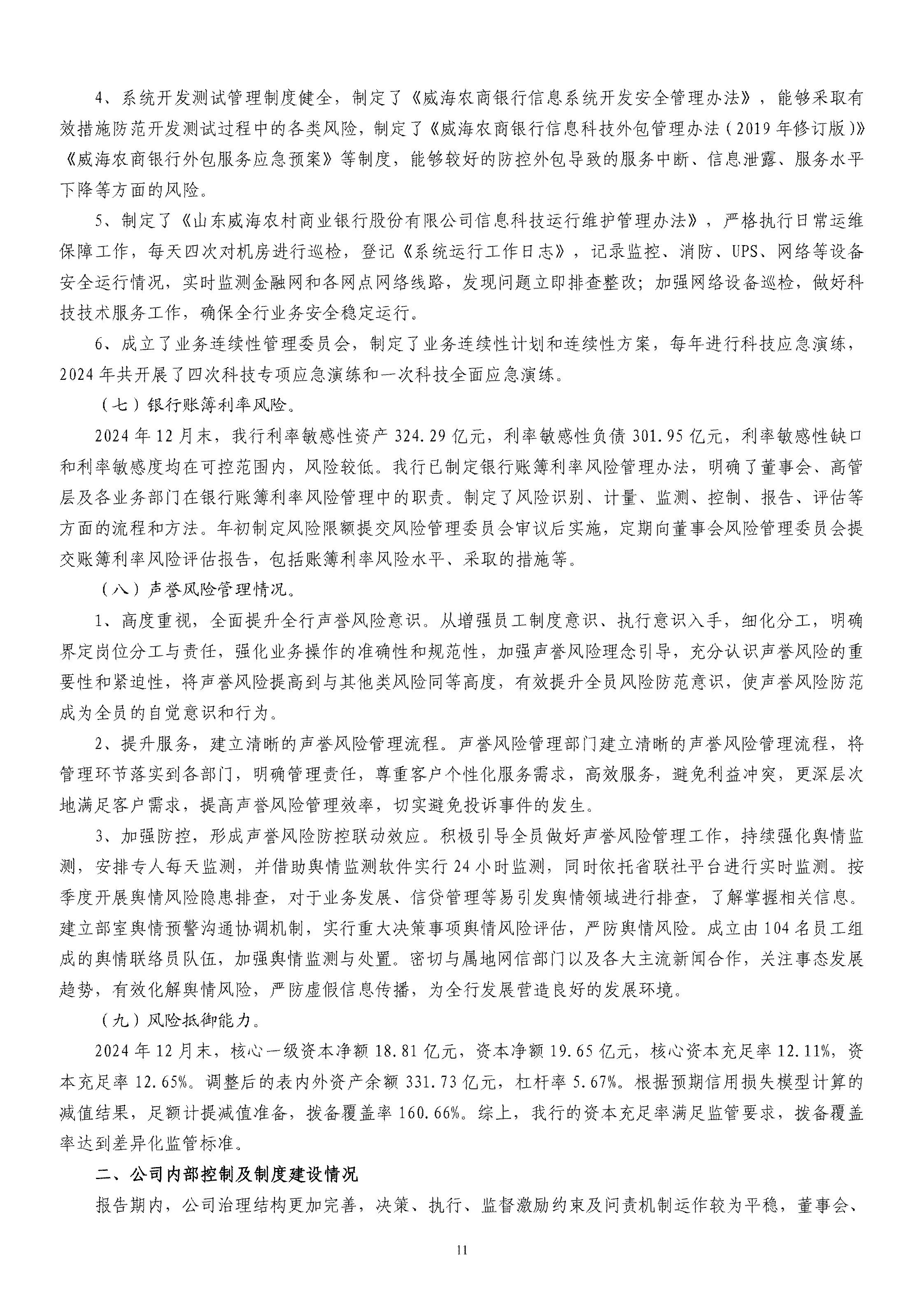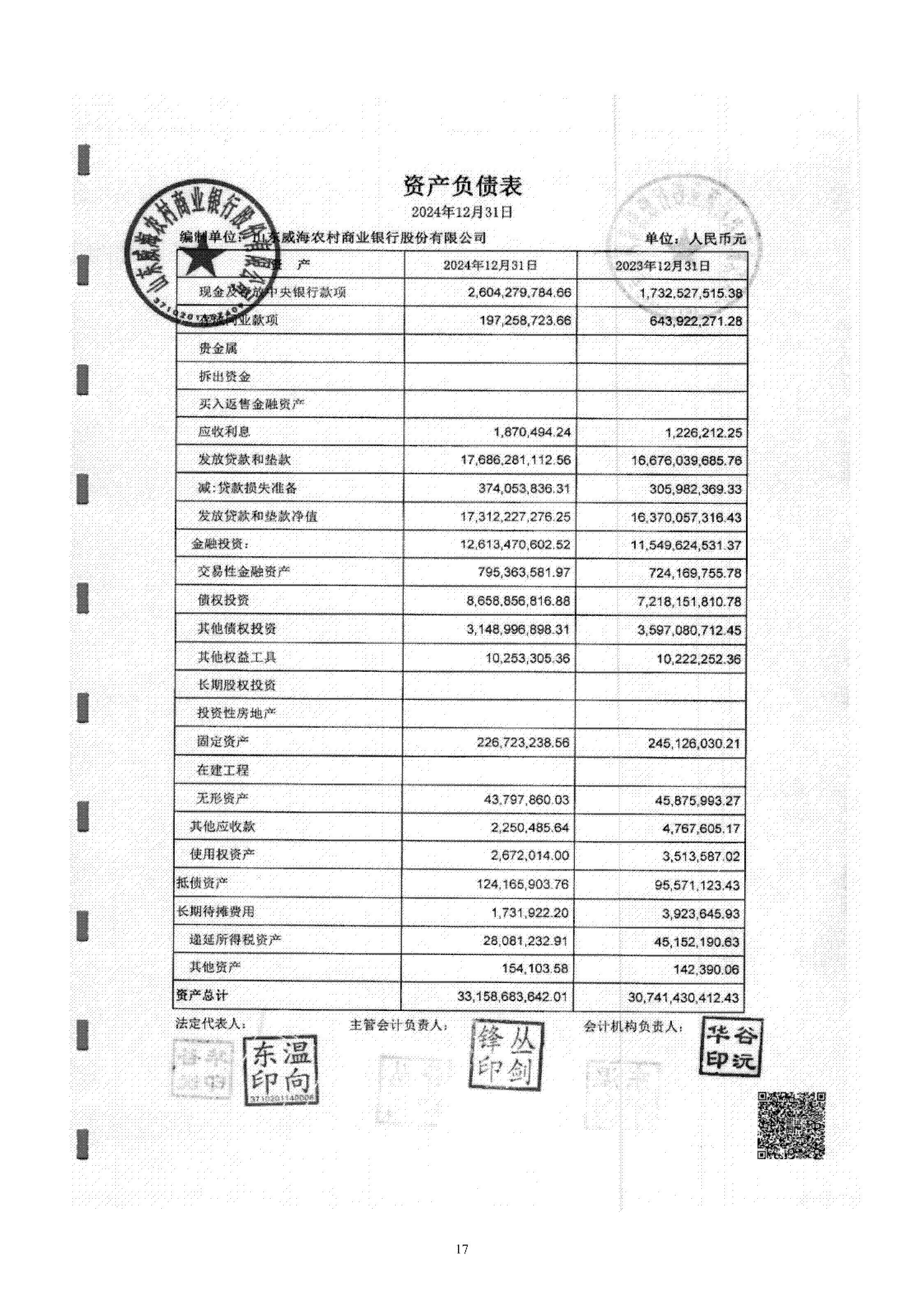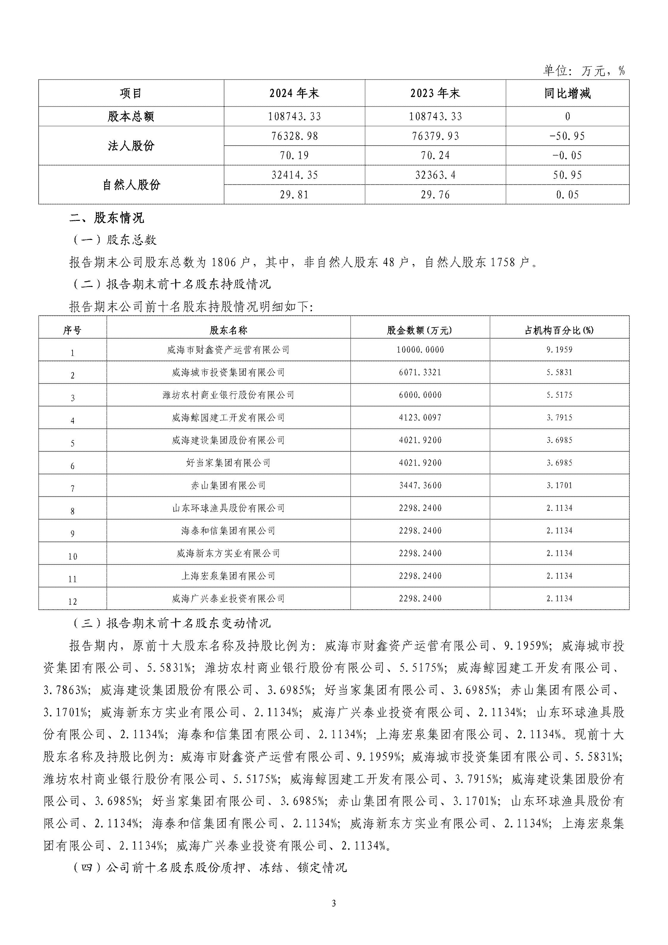 山东威海农村商业银行股份有限公司二〇二四年度报告