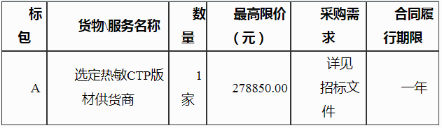 威海日报印刷有限公司选定热敏CTP版材供货商招标公告