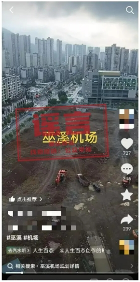 近日,网民梁某在互联网平台发布信息称“巫溪机场”,配以施工现场视频,并在评论区回复网民“是真的”,引发关注。经核实,网传信息系谣言。