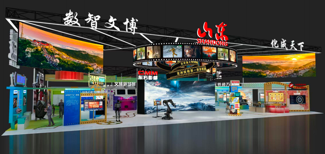 山东展区突出文化数字化、网络化、智能化、生活化、泛在化,共设置六大版块,包括硬核影势力、智汇新生活、无界阅万象、文旅新场景、数智觅遗珍、非遗新手造。集中推介一批全国领先的硬核企业及产品。近50家企业携新品首次展出,海看、浪潮、歌尔、东方影都、泰山体育、东阿阿胶等龙头企业集中亮相。