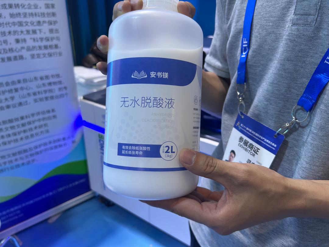 一台喷雾脱酸机摆放在展区显眼的位置。“这款设备主要用于纸张的脱酸处理,可以有效保护古籍、文献、字画等纸质文物。”山东迈越文保科技有限公司执行董事杨已品介绍。