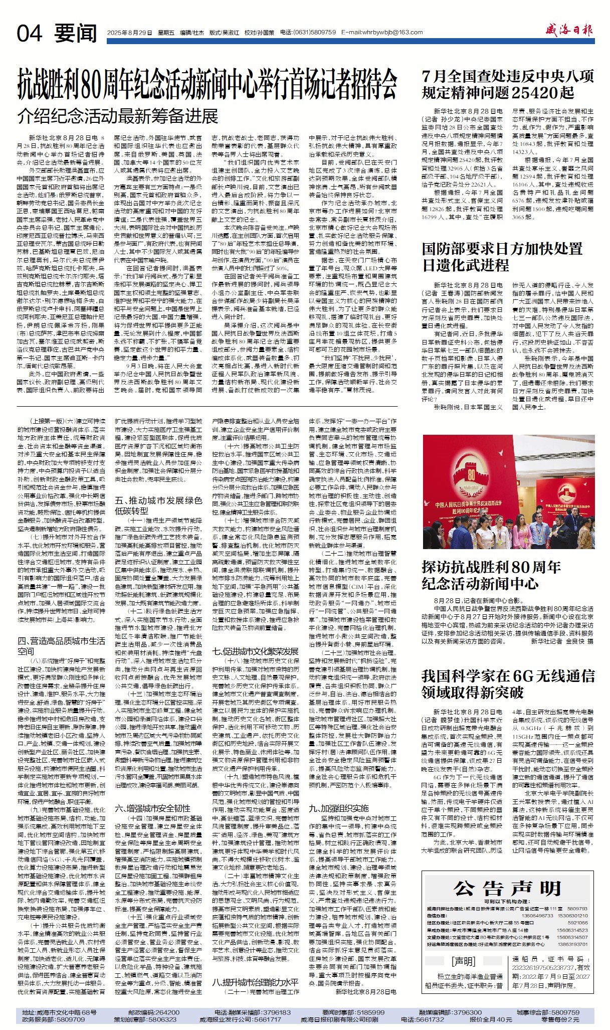 威海日报 2025-08-29