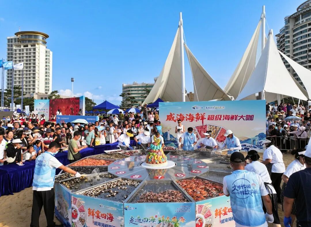 本次活动由中共威海市委网络安全和信息化委员会办公室指导,市海洋发展局、市商务局、高区管委等联合主办,以“鲜宴四海”为主题,通过超级海鲜大咖免费品鉴、手拉海参表演、海鲜市集和非遗体验等多元形式,邀请八方来客领略威海山海风光,品味海鲜之鲜,全方位展现威海海鲜的独特魅力,进一步擦亮“走遍四海鲜在威海”的城市新名片。