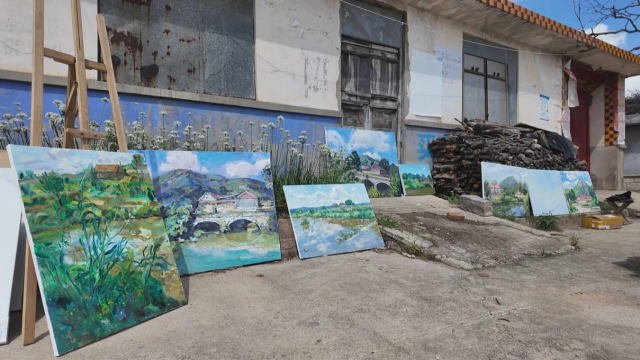 艺术家们专注创作的身影,也成为了村落里一道独特的风景线。村民们围在画布旁,看着颜料在画布上逐渐晕染出家乡的模样,不时发出赞叹。