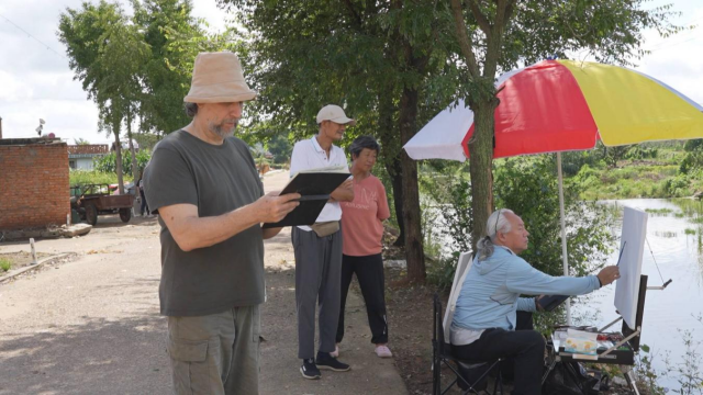 “我们都在画眼前的风景,画小桥、画房子。但对油画家来说,更关键的是捕捉到空气流动的质感、光线瞬息的变化,还有天上的云朵、周遭的自然景致,以及溪水里嬉戏的鸭子。能在这里创作,心情格外愉悦。”俄罗斯艺术家安纳托利・谢尔盖耶维奇・阿涅科夫说。