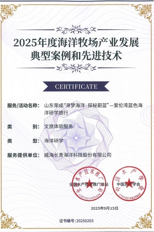 日前,全国水产技术推广总站和中国水产学会联合公布2025年度全国海洋牧场技术成果,全国共遴选出83个,我市占8席。威海长青海洋科技股份有限公司、荣成楮岛水产有限公司、威海圣航水产科技有限公司、威海银泽生物科技股份有限公司、山东灯塔水母海洋科技有限公司、威海西港水产有限公司6家企业8个海洋牧场产业发展典型案例和先进技术入选。全国海洋牧场技术成果的评选对于推动海洋牧场先进技术推广应用,提高海洋牧场产业化发展水平,促进海洋牧场生态产品价值实现和可持续发展具有重要意义。