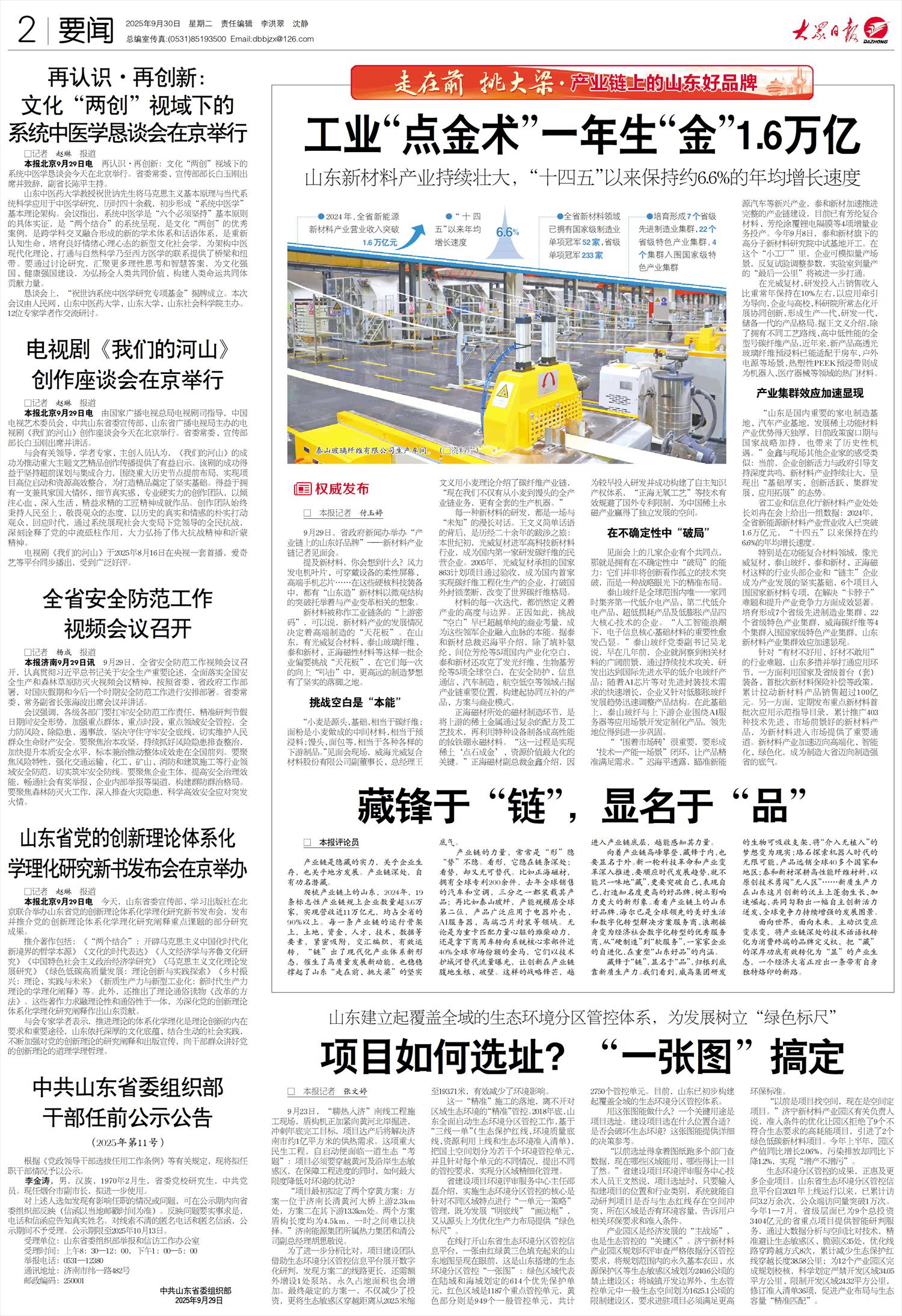 爬梳产业链上的山东,2024年,19条标志性产业链规上企业数量超3.6万家,实现营收近11万亿元,均占全省的90%以上。每一条产业链的运行骨架上,土地、资金、人才、技术、数据等要素,紧密吸附,交汇编织,有效运转,“链”出了现代化产业体系新形态,催生了高质量发展新动能,也稳稳撑起了山东“走在前、挑大梁”的坚实底气。