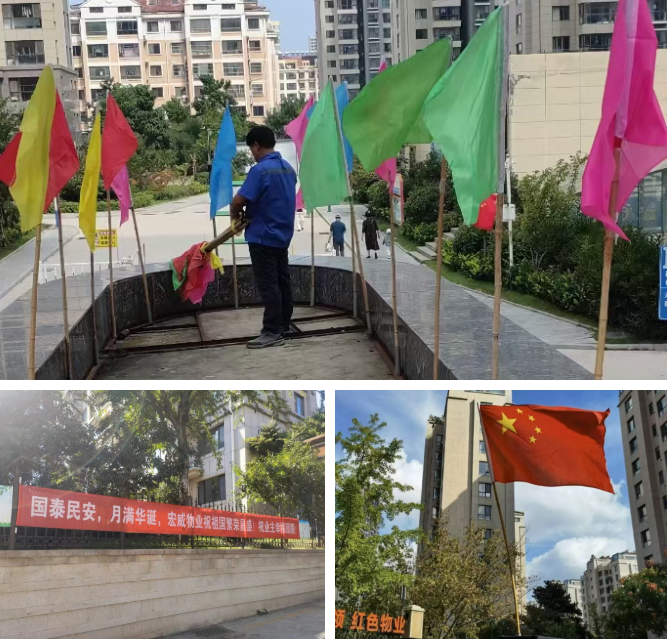 各小区物业提前一周启动节日氛围营造工作,组织工作人员在小区主干道两侧悬挂国旗、彩旗,在入口、中心广场等地布置主题装饰。美临花园、尚海湾、龙润国际等多个小区内,国旗迎风招展,彩旗相映成趣,居民一踏进小区,就能感受到热烈喜庆的节日氛围·。