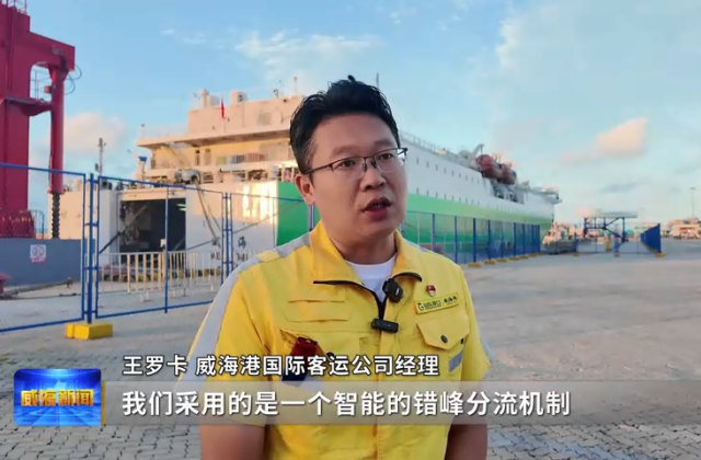 威海港国际客运公司经理王罗卡说,在通行效率方面上,采用的是一个智能的错峰分流机制,依托车辆的实时监控系统,动态地优化放行策略,这样的话大幅地缩减旅客还有车辆的候检时间。