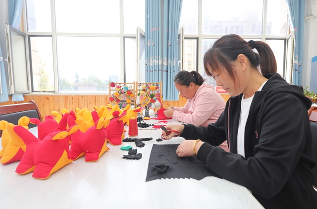 嘉和社区布艺工坊,居民正在做手工艺品。