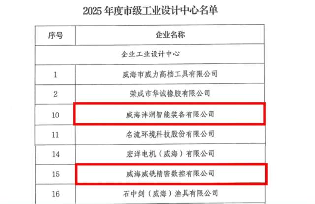 近日,记者从临港区经济发展局获悉,2025年度市级工业设计中心名单公布,临港区两家企业——威海沣润智能装备有限公司和威海威铣精密数控有限公司上榜,标志着临港区在高端装备制造领域再添生力军。