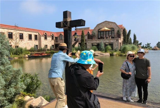 可以说,穿梭于山海之间,这条公交线不仅是交通工具,更是一扇行走的观景窗,为游客带来领略天地之美的独特体验。数据显示,今年1至8月,猫头山吸引游客超267万人次,持续高涨的旅游热潮为沿途文旅产业注入蓬勃生机。对于区域旅游发展格局,环翠区文化和旅游局副局长王媛媛表示:“我们深入实施‘文旅+百业’全域融合战略,创新构建大景区发展格局。通过系统整合环海路、北山路、半月湾等优质资源,成功打造两个3A级旅游景区、8家星级民宿,以及半月湾沙滩娱乐区等五大水上项目,构建起沉浸式旅游体验矩阵。” 在这一布局下,位于环海路旁的千寻集梦酒店开业后就迎来了游客潮。店长邢志富介绍:“我们是集住宿、餐饮、休闲于一体的庄园酒店,借助独特地势,依山伴海,还打造了人工湖,希望给游客带来童话般的梦境体验。开业以来每天爆满,最多一天接待2000多人。”