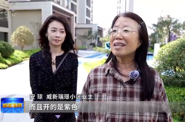 威新瑞璟小区业主安琼说,今天过来看房的时候,就看到花就在那开着,而且开的是紫色,正好跟今天交房的时候,这种紫色的氛围特别映衬,心里很激动。