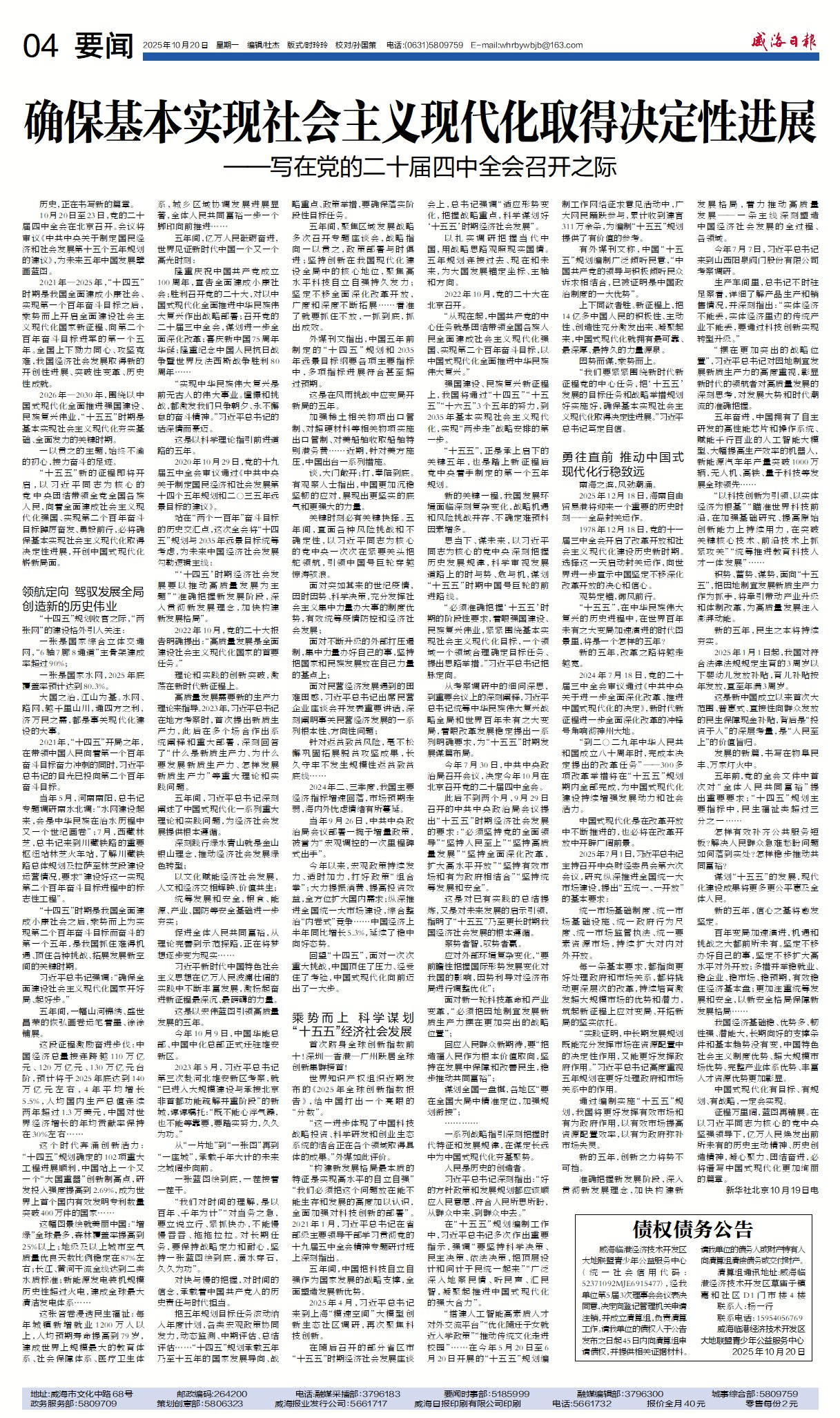 威海日报 2025-10-20