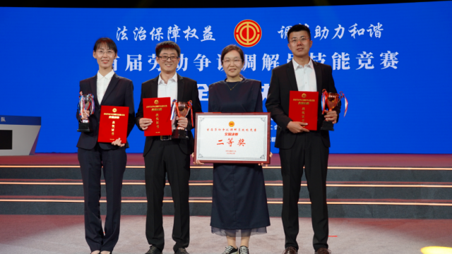 全国决赛由全国总工会主办、四川省总工会承办,分为晋级赛和总决赛两个阶段。其中晋级赛在“职工之家”App“法律服务”模块设置基础知识在线答题和团队合作式的典型案例分析。总决赛设专业知识竞答、调解情景模拟等环节,实行团队和个人双积分制。经过激烈角逐,四川队获得团体一等奖,山东队、广东队获得团体二等奖,北京、江苏、江西、河南、湖南队获得团体三等奖。威海市文登区总工会工会干部邱兵作为山东队中的工会干部,经过层层选拔进入晋级赛,在决赛中表现优异,助力山东省代表队勇夺二等奖好成绩。