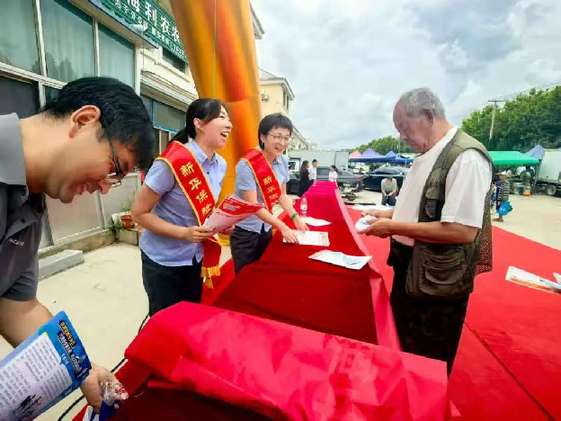 工作人员向商家普及金融知识。在农村大集开展金融教育宣传工作,主要针对老年人发放金融知识单页,普及非法集资陷阱和电信诈骗金融知识,向老年群体做好风险防范提醒。