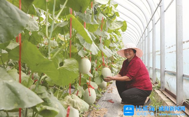 金井村的大棚网纹瓜即将成熟上市。