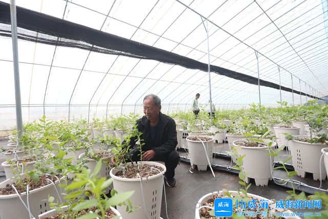在金井村蓝莓大棚里,村民对作物进行日常管护。