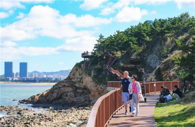 9月底,火炬八街至小石岛滨海木栈道正式建成并开放。这条镶嵌在海岸线上的景观廊道,串联起火炬八街、国际海水浴场、小石岛等景区景点,成为激活滨海旅游的“黄金纽带”。