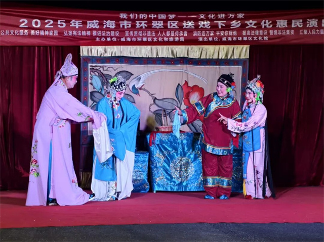 近日,“我们的中国梦—文化进万家”2025年威海市环翠区送戏下乡文化惠民演出已全部结束。此次活动由威海市环翠区文化和旅游局主办,威海市环翠区文化馆承办,演出范围覆盖环翠区105个行政村,共带来了105场精彩纷呈的演出,为居民送上了丰富的精神文化大餐。