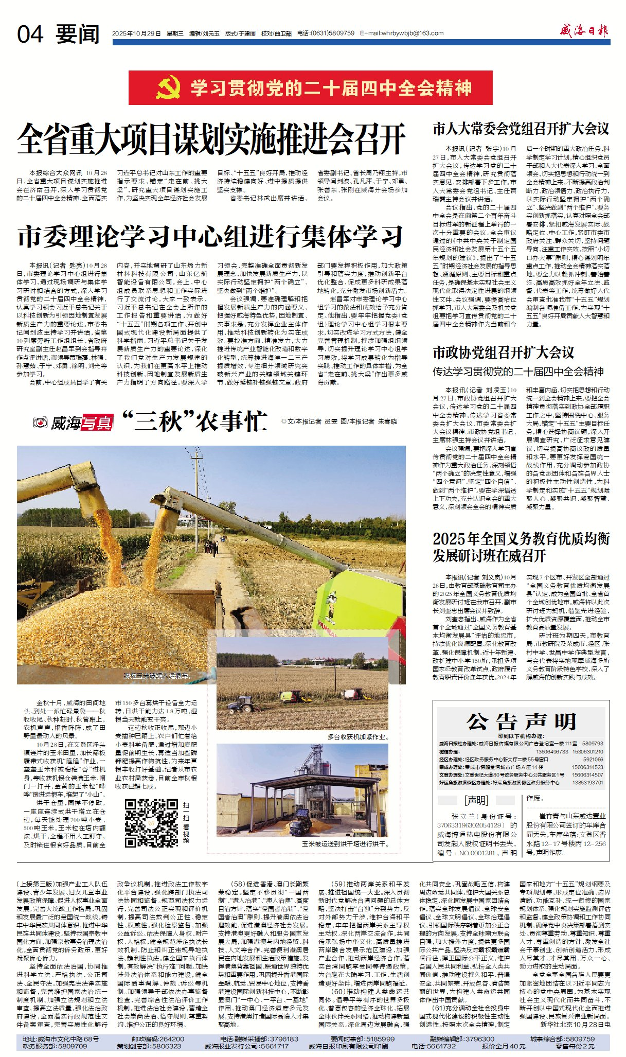 威海日报 2025-10-29