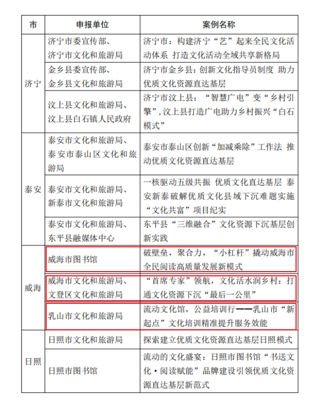 威海新闻网讯 日前,第二批山东省公共文化服务高质量发展典型案例发布,我市《破壁垒,聚合力,“小杠杆”撬动威海市全民阅读高质量发展新模式》《“首席专家”领航,文化活水润乡村:打通文化资源下沉“最后一公里”》《流动文化馆,公益培训行——乳山市“新起点”文化培训精准提升服务效能》3个案例榜上有名
