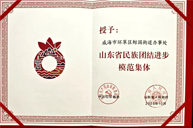 近日,在全省民族团结进步表彰大会上,环翠区鲸园街道办事处喜获“山东省民族团结进步模范集体”称号。这份荣誉既是对鲸园街道多年扎根基层、倾情服务各族群众的肯定,也是对其推动民族团结与社会治理深度融合实践的认可。