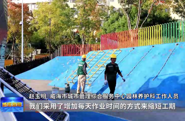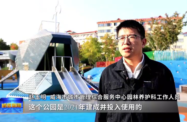威海市城市管理综合服务中心园林养护科工作人员赵玉明说,这个公园是2021年建成并投入使用的,它周围的居住区还有学校较多,所以说它的使用频率比较高。今年旅游旺季的时候,有的市民反映塑胶地面有一些裂口。
