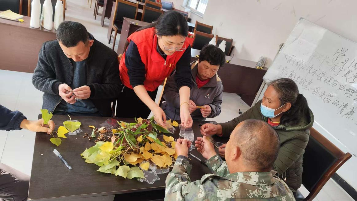 志愿者引导协助参与者完成标本植物标本,从落叶的挑选、压制到最后的装裱,每一步都凝聚着参与者的心血与创意。