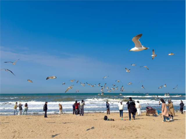 感受冬日海边的肃穆,海边翩跹的海鸥,则是大海的使者。捧一把食粮,看它们翩然飞过,治愈感瞬间拉满。