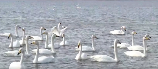 连日来,在荣成大天鹅国家级自然保护区,成群结队的大天鹅在湖面游弋,吸引了众多游客前来观赏。