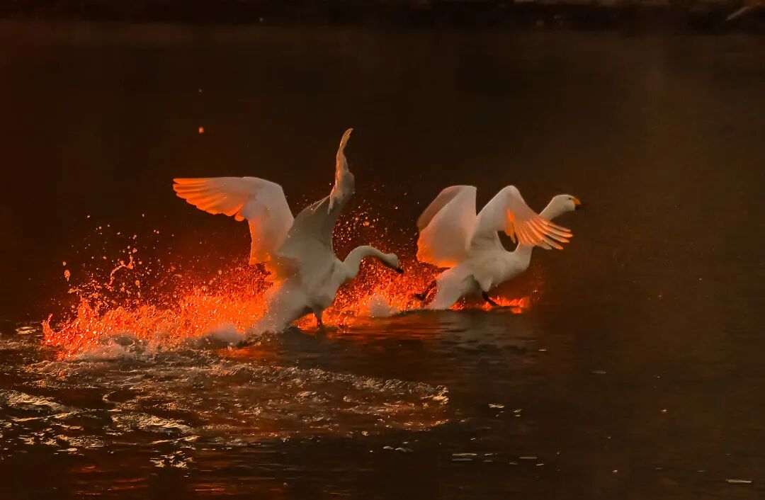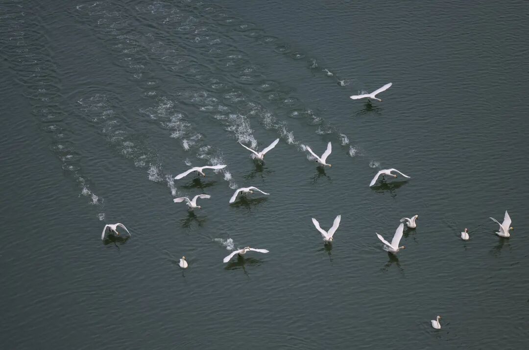 ▶2024年3月13日 最后一批大天鹅离开那香海天鹅湖起飞北迁,本年度天鹅季结束,共有300余只天鹅在此越冬。