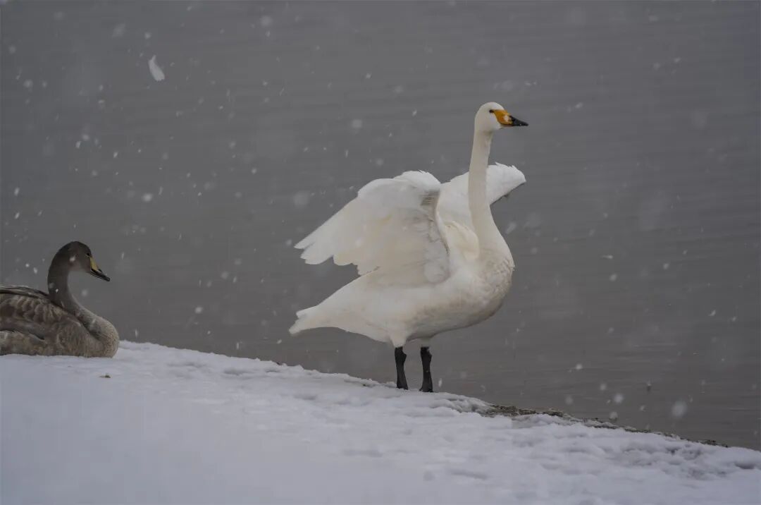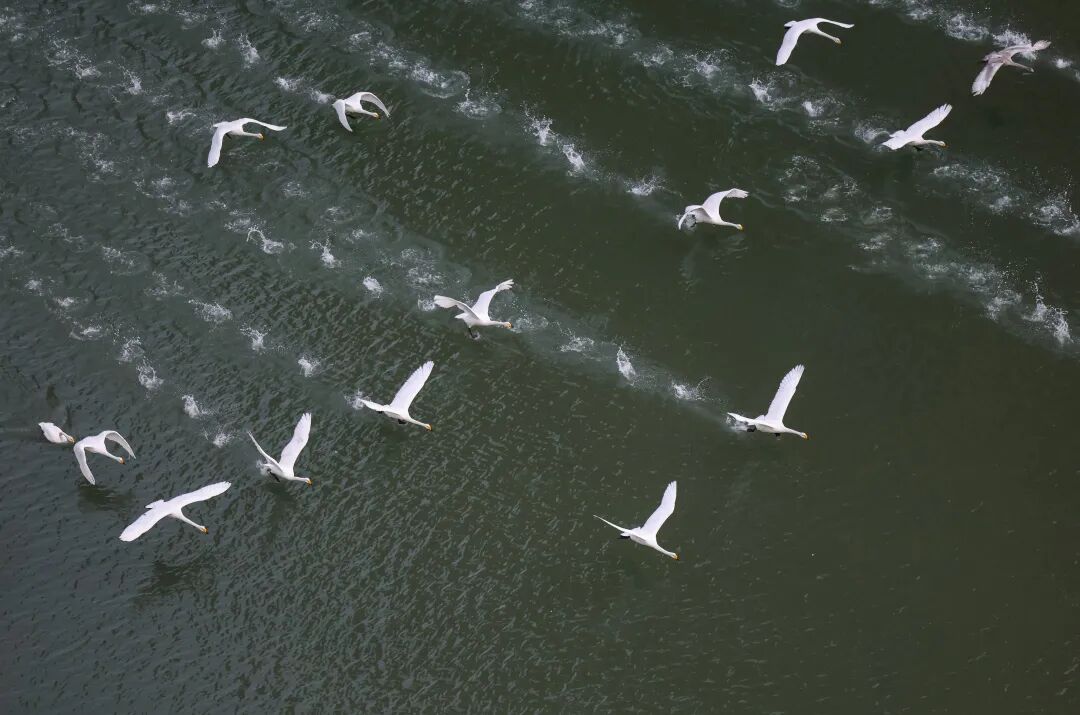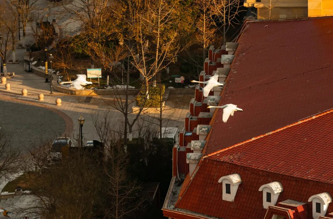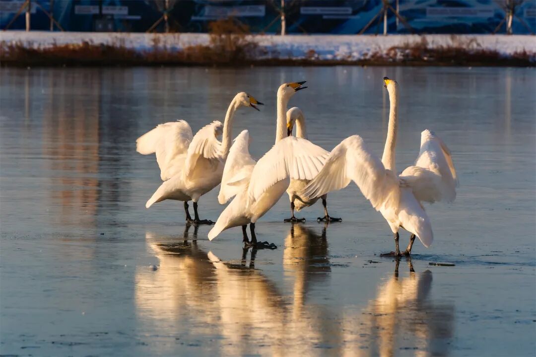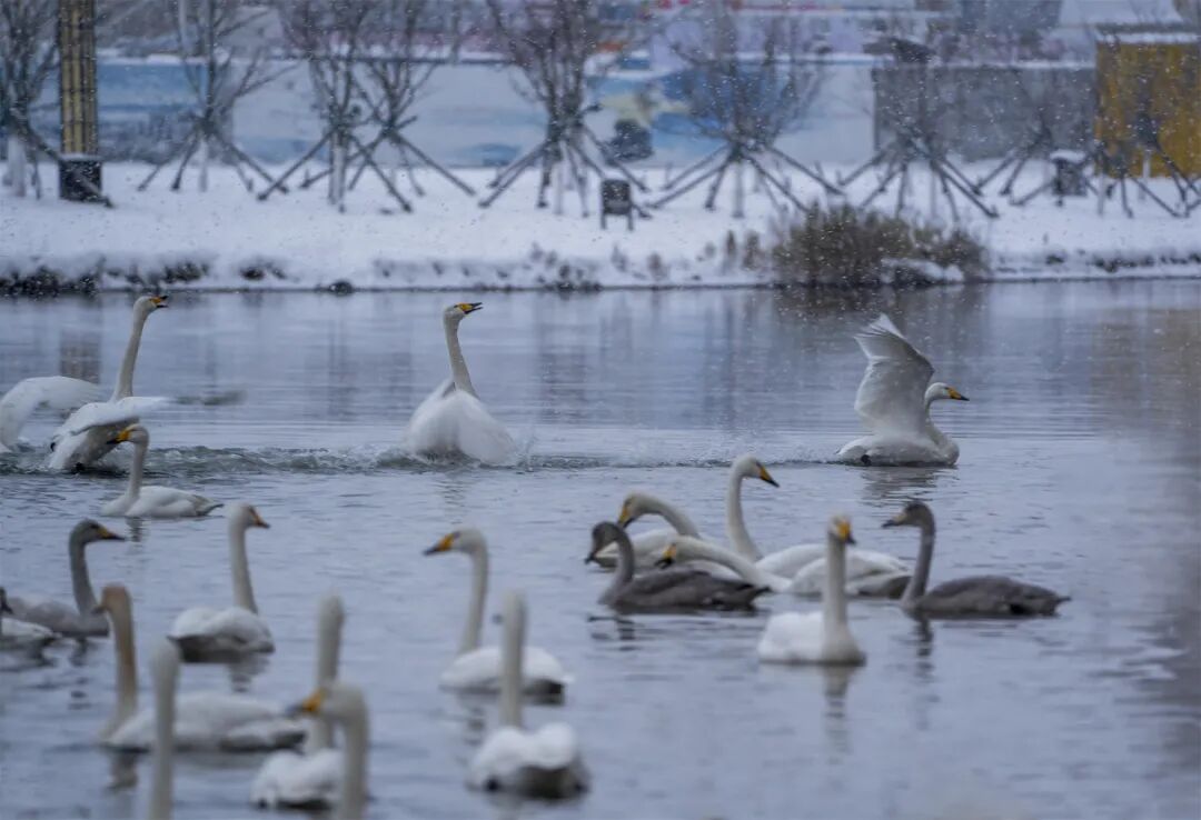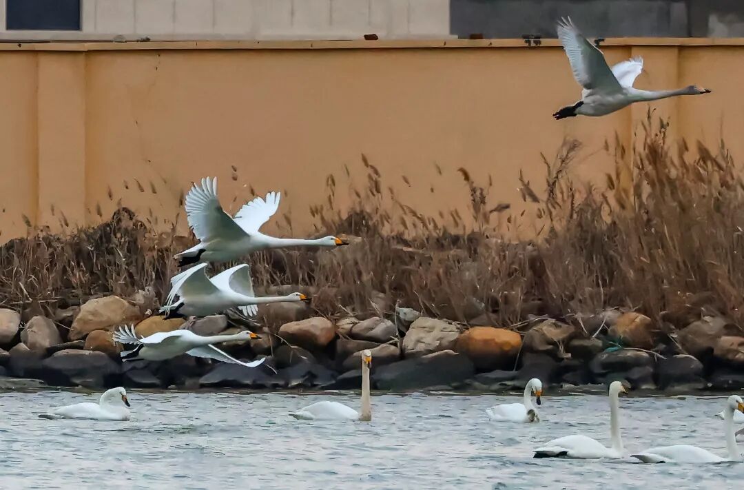 每年三月,暖煦驱散凛冽,天鹅北迁的序曲便开始奏响。大天鹅们开始以家族为单位练飞,场面壮观而略带伤感。业主们笑着说自己即将“失业”,但又满怀信心地预约着冬日的“再就业”。