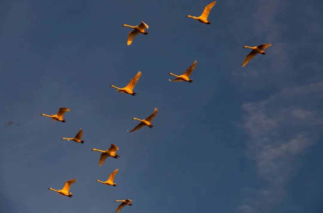 ▶2025年3月23日 生活在那香海天鹅湖的1200只大天鹅全部踏上归程,飞赴遥远的西伯利亚。