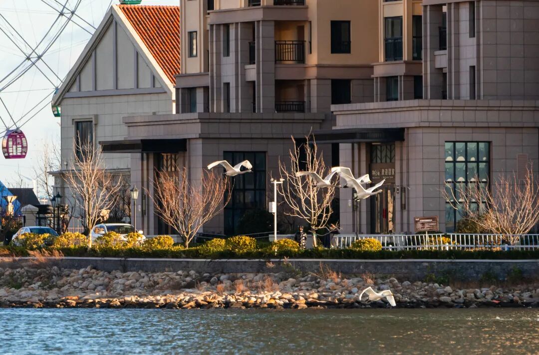 2022年12月,冬日的肃静笼罩着海岸。在那香海,这份宁静却意外被一群不速之客打破——三只宛若仙子的白色大天鹅,如同探访秘密花园的精灵,悄然降落在玉兰湖(现那香海天鹅湖)的碧波之上。