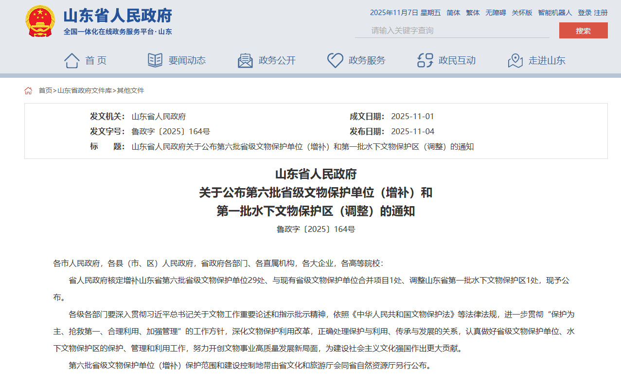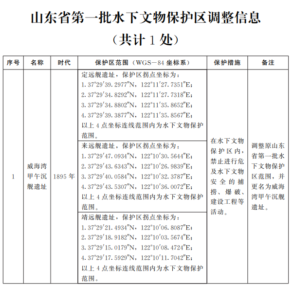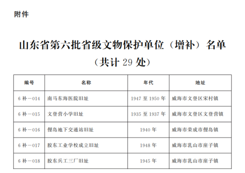 附:山东省第六批省级文物保护单位(增补)名单、山东省第一批水下文物保护区调整信息(威海部分)