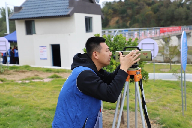 为全面检验参赛选手的综合素养,本次竞赛科学设置理论考试与外业操作两大板块。其中,理论考试聚焦水文领域核心知识,涵盖相关法律法规、技术规范标准及日常测报作业要点,重点考察选手的理论积淀与知识储备厚度;外业操作环节则选址鲍村水文站,设置翻斗式雨量计安装调试、人工涉水测流、水尺零点高程测量、RTK测大断面等实操项目,着重考评选手对先进设备与常规测验仪器的驾驭能力,以及应对应急监测、开展常规测验的综合业务水准。
