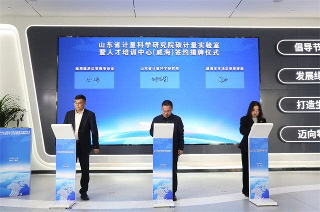 为构建现代化计量服务体系,服务全省“双碳”战略布局,提升区域核心竞争力,11月14日,山东省计量科学研究院碳计量实验室(威海)、碳计量人才培训中心(威海)在临港区正式成立,山东省计量科学研究院、威海市市场监督管理局、临港区管理委员会三方在临港区零碳赋能中心举行了签约揭牌仪式。