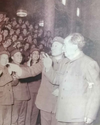 1964年,毛主席接见解放军报社等单位代表(一排左三为华楠)。