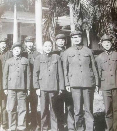 1977年冬,邓小平同志接见起草军委全会文件的部分同志,右二为华楠。