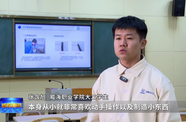 威海职业学院大二学生张含旭说,本身从小就非常喜欢动手制造小东西,在高考填志愿的时候就报考了这个专业。在大一的时候,比如说自己的蹲姿、站姿哪里不符合技术要求,都会去更改。