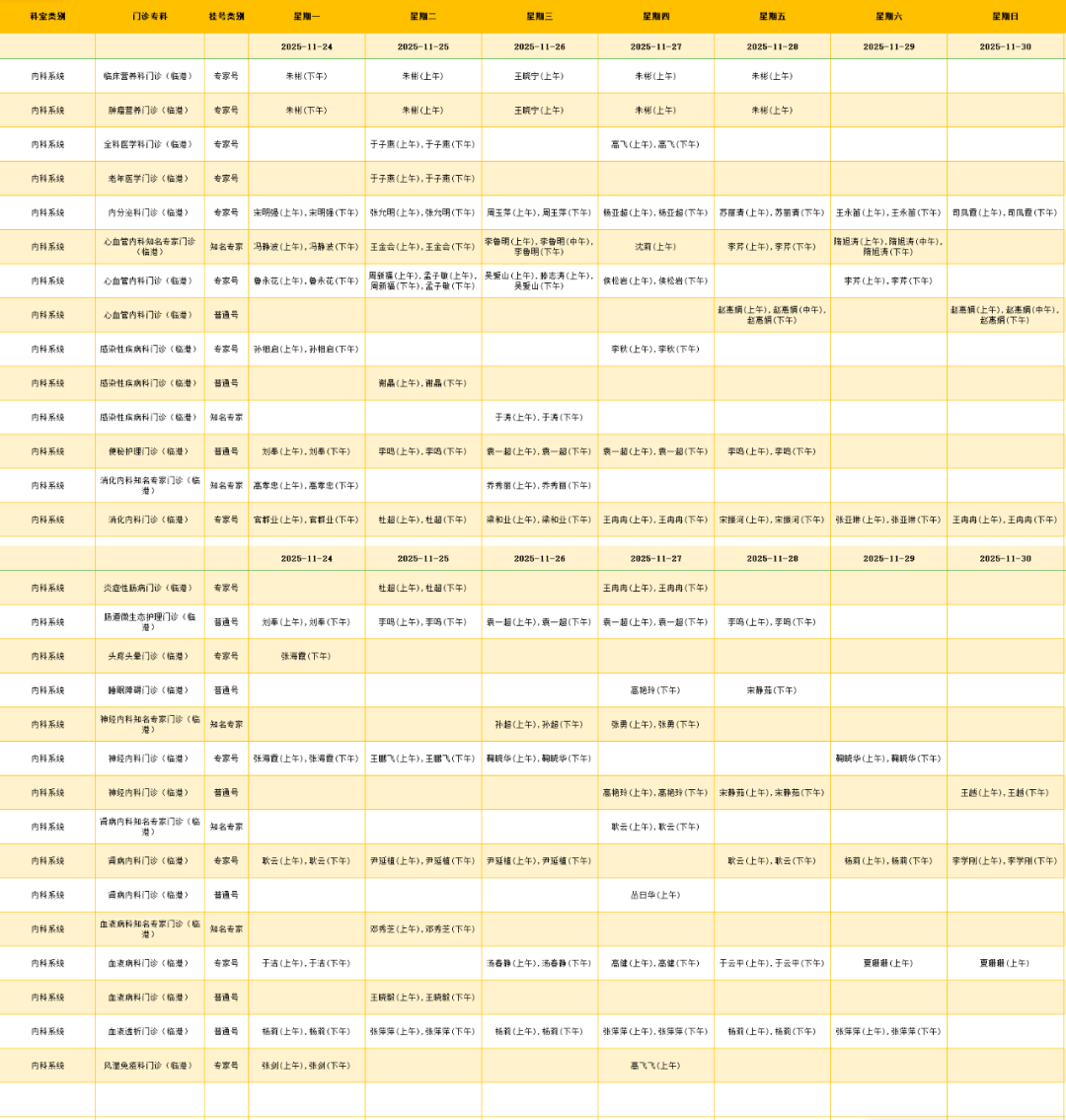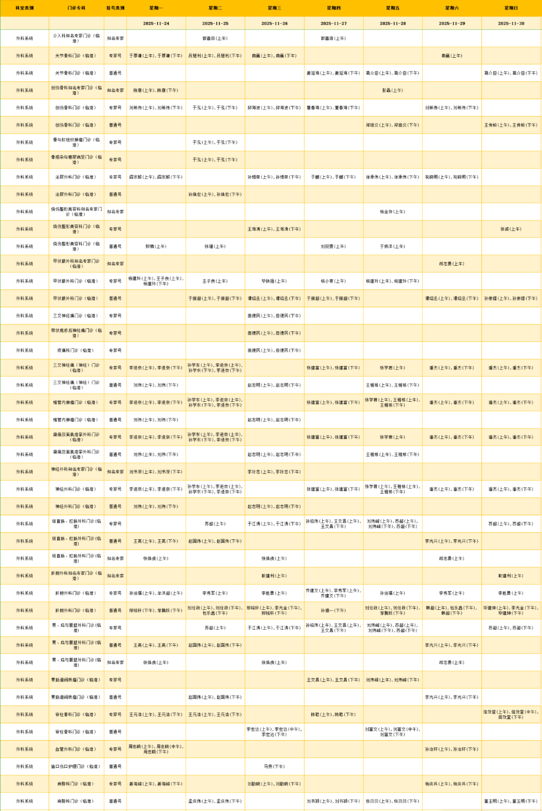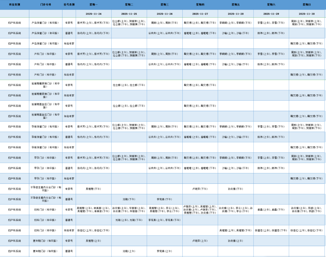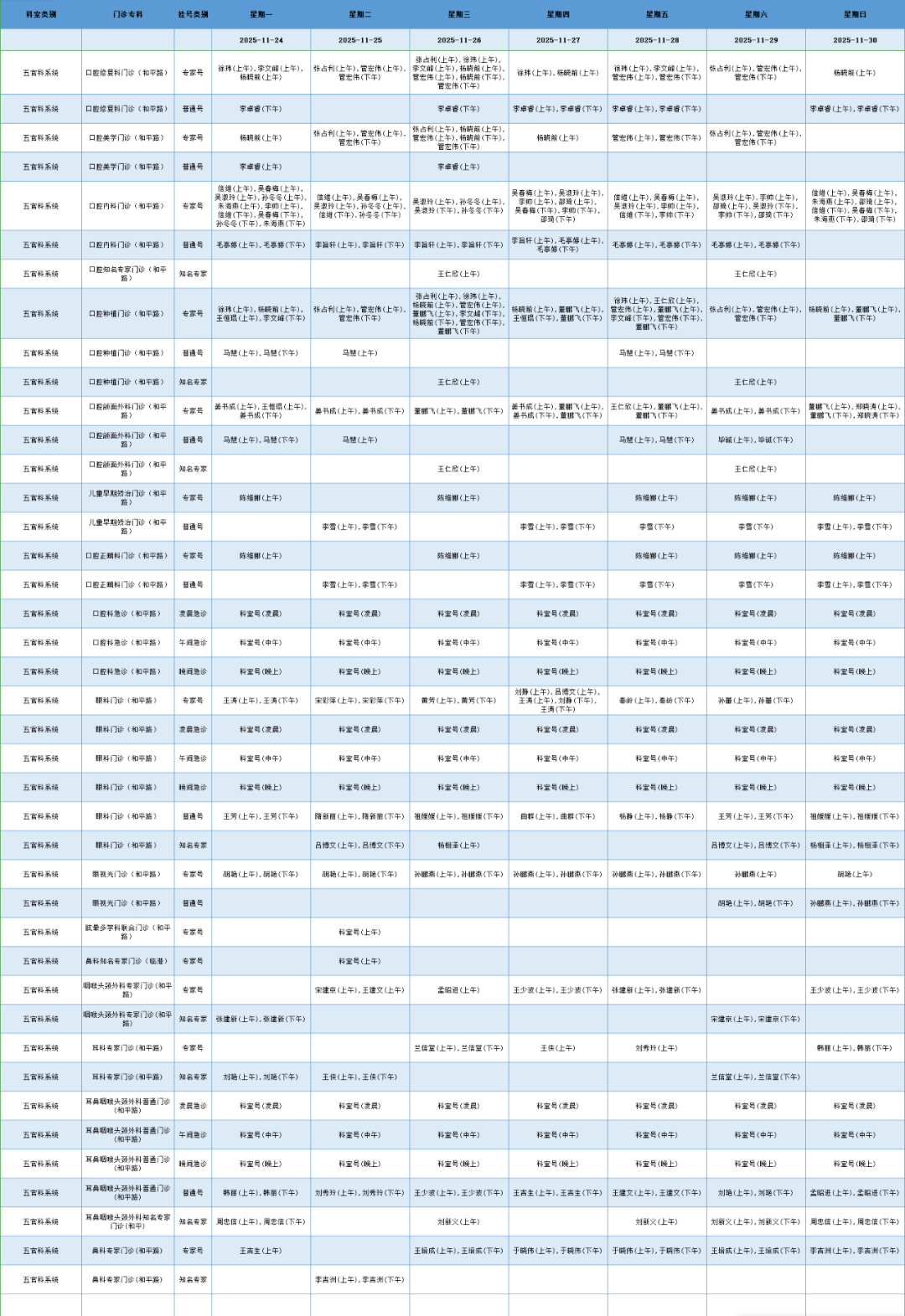 和平路院区心理、皮肤、医疗美容系统门诊排班表